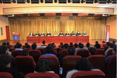 1月8日下午,学校在图书馆二楼报告厅召开2020年教学工作总结表彰暨“省级双高工程”建设动员大会。校领导曹焱、刘志伟、孙建立、李松涛、夏连学、赵兰州、张瑞春、卢旺林、刘芝梅、朱学军及全体教职工参加会议,会议由校长刘志伟主持。