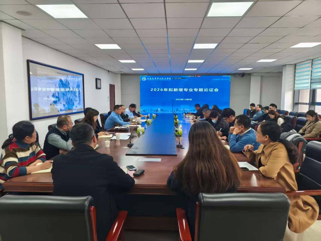 12月8日,学校教学工作委员会在行政楼四楼第三会议室召开2026年拟新增专业专题论证会,副校长李小强出席并讲话,宇通集团教育公司总经理韩德利、河南省大道路业有限公司总经理周俊广、河南四通工程检测公司董事长付雷峰、广州维脉电子科技有限公司总经理徐玥昊等4位企业委员以及全体校内委员出席会议,会议由秘书长谢晓娜主持。